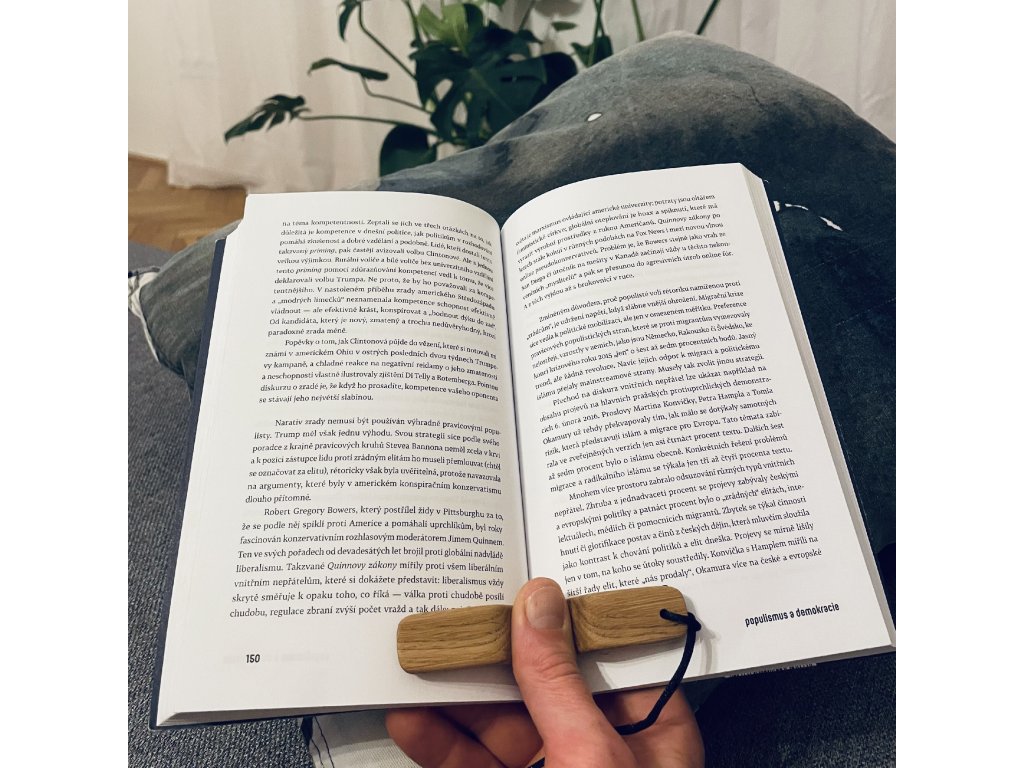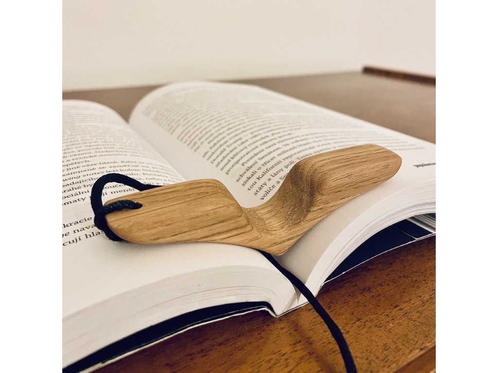 Dubová dřevěná záložka do knihy i s provázkem pro založení. Přesně tam, kde jsi zrovna ukončili čtení své nové oblíbené knihy. A šetří křeče v ruce způsobené čtením!